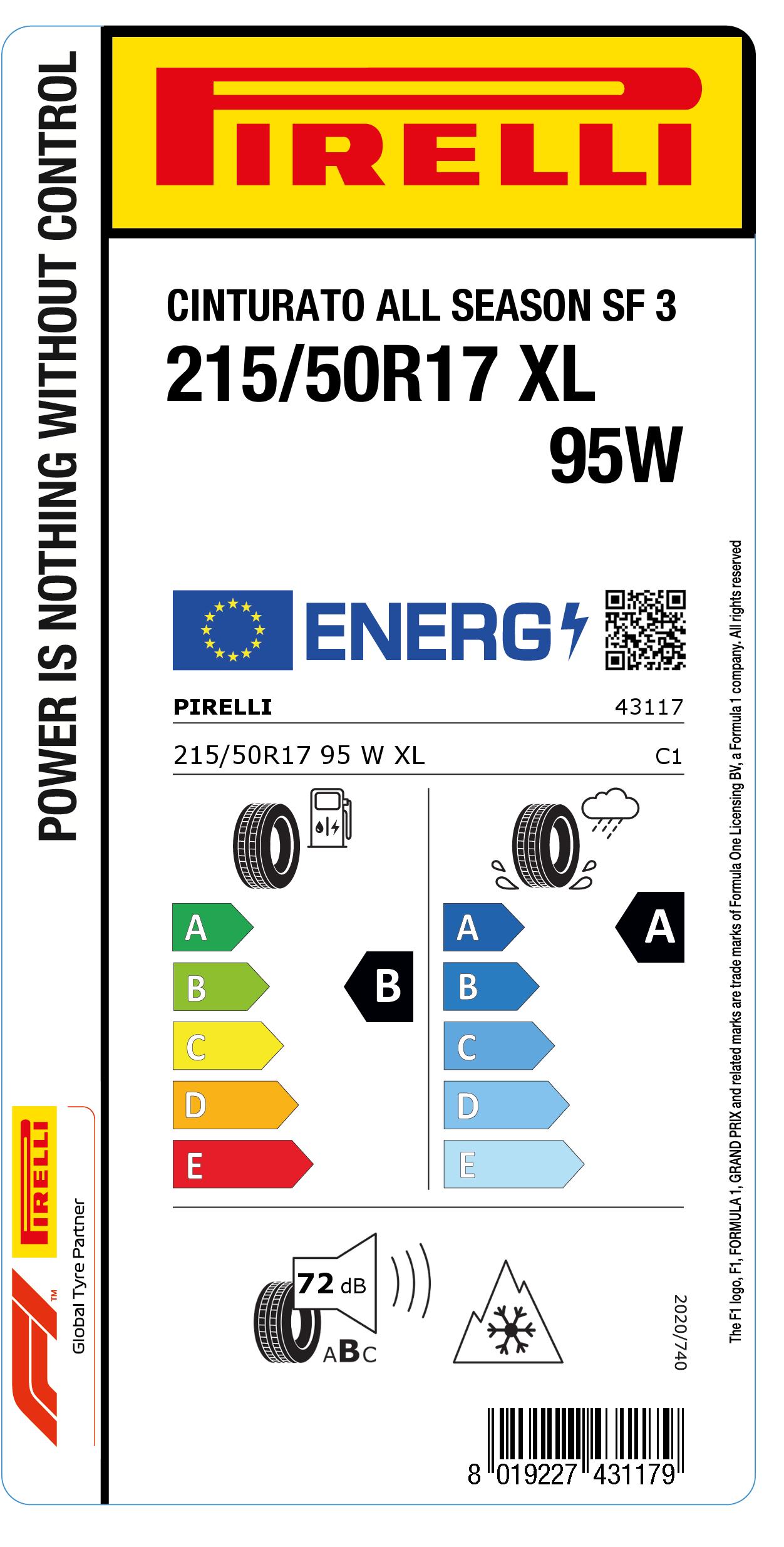 215/50R17 95W XL Pirelli Cinturato All Season SF 3