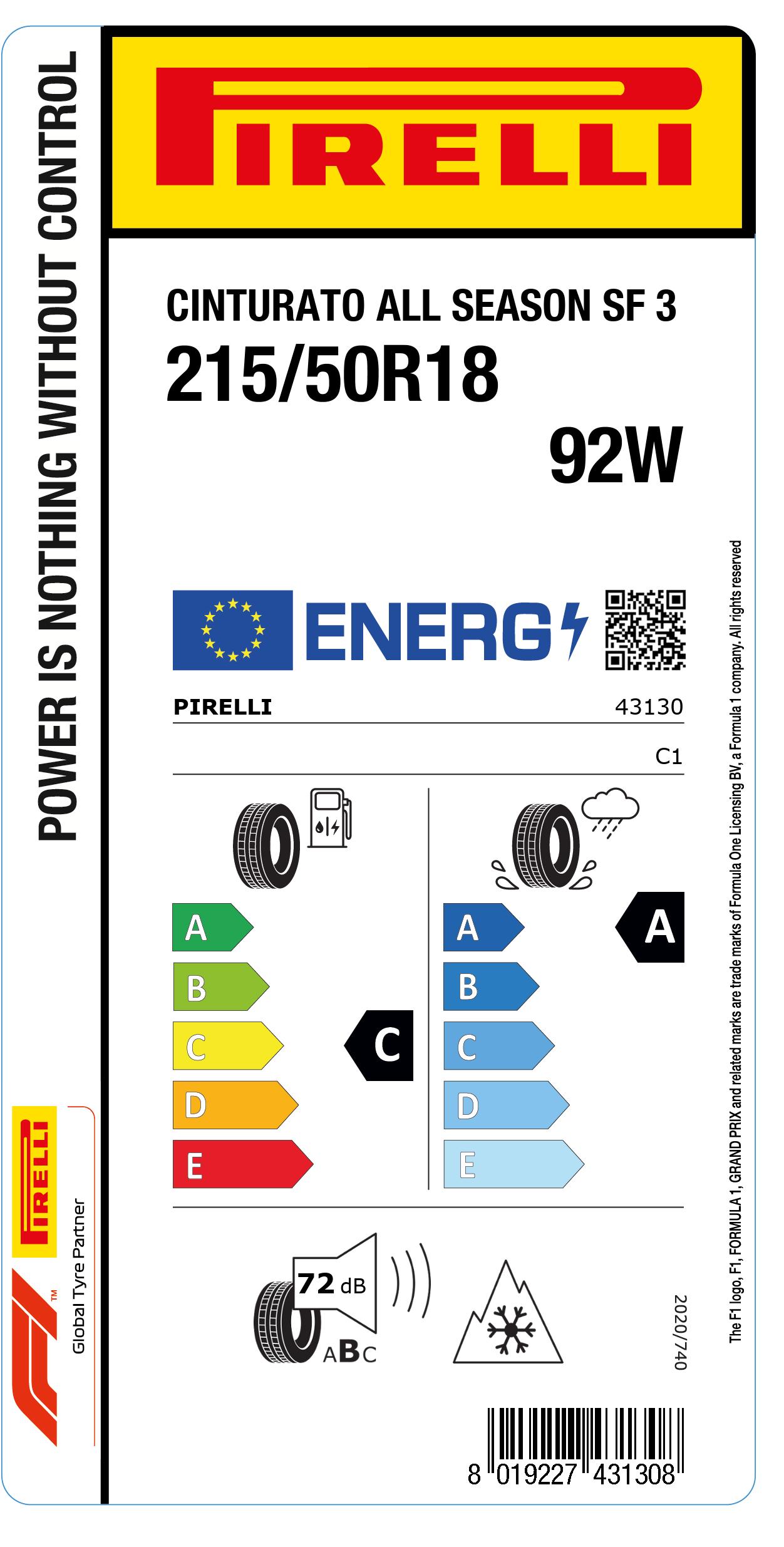 1 Έκθεση 23CPCEXT-175-2 - Συγκριτικές δοκιμές που πραγματοποιήθηκαν τον Δεκέμβριο του 2023 και τον Ιανουάριο του 2024 από την DEKRA με μέγεθος ελαστικού 225/40 R18. Η Pirelli πέτυχε το καλύτερο αποτέλεσμα στο συνδυαστικό φρενάρισμα, μετρούμενο ως το άθροισμα των αποστάσεων πέδησης σε μέτρα σε στεγνές, βρεγμένες και επιφάνειες με χιόνι: Pirelli Cinturato™ All Season SF3 (72,8), Bridgestone Turanza All Season 6 (73,1), Michelin CrossClimate 2 (74,6), Continental AllSeasonContact 2 (75,5), Goodyear Vector 4Seasons Gen-3 (77,0). Περισσότερες πληροφορίες σχετικά με την ΕΚΘΕΣΗ ΔΟΚΙΜΗΣ ΣΥΝΔYΑΣΤΙΚΗΣ ΠΕΔΗΣΗΣ