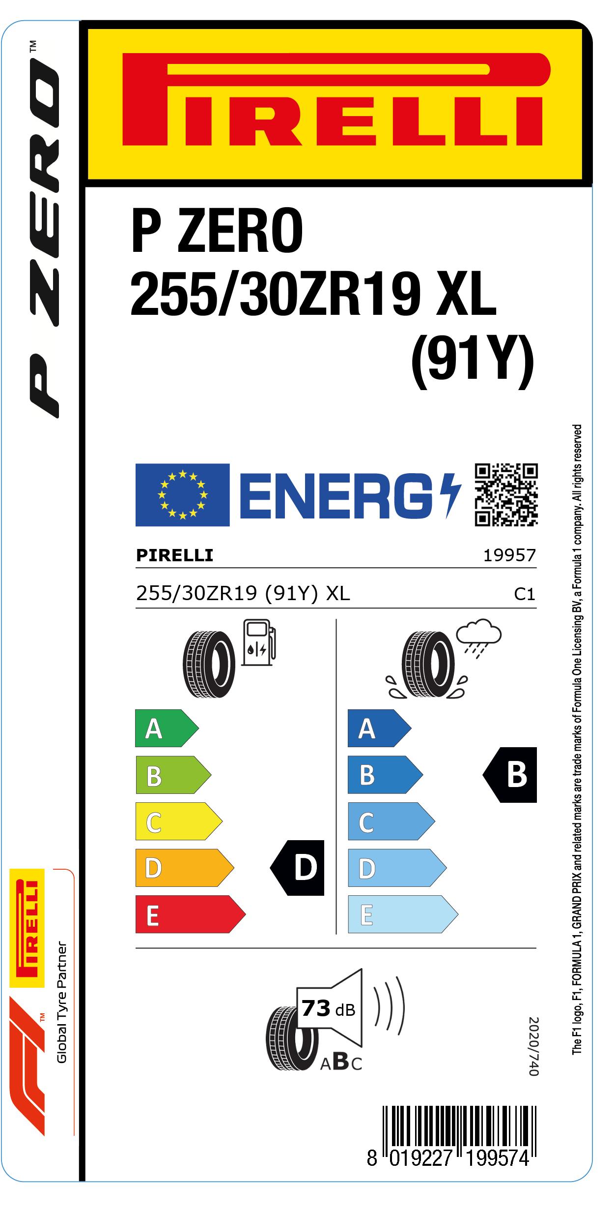 255/30R19 91Y XL Pirelli P Zero