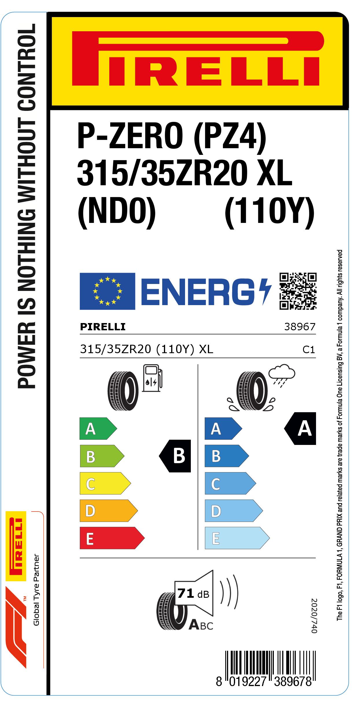315/35R20 110Y XL Pirelli P Zero PZ4 PORSCHE ND0